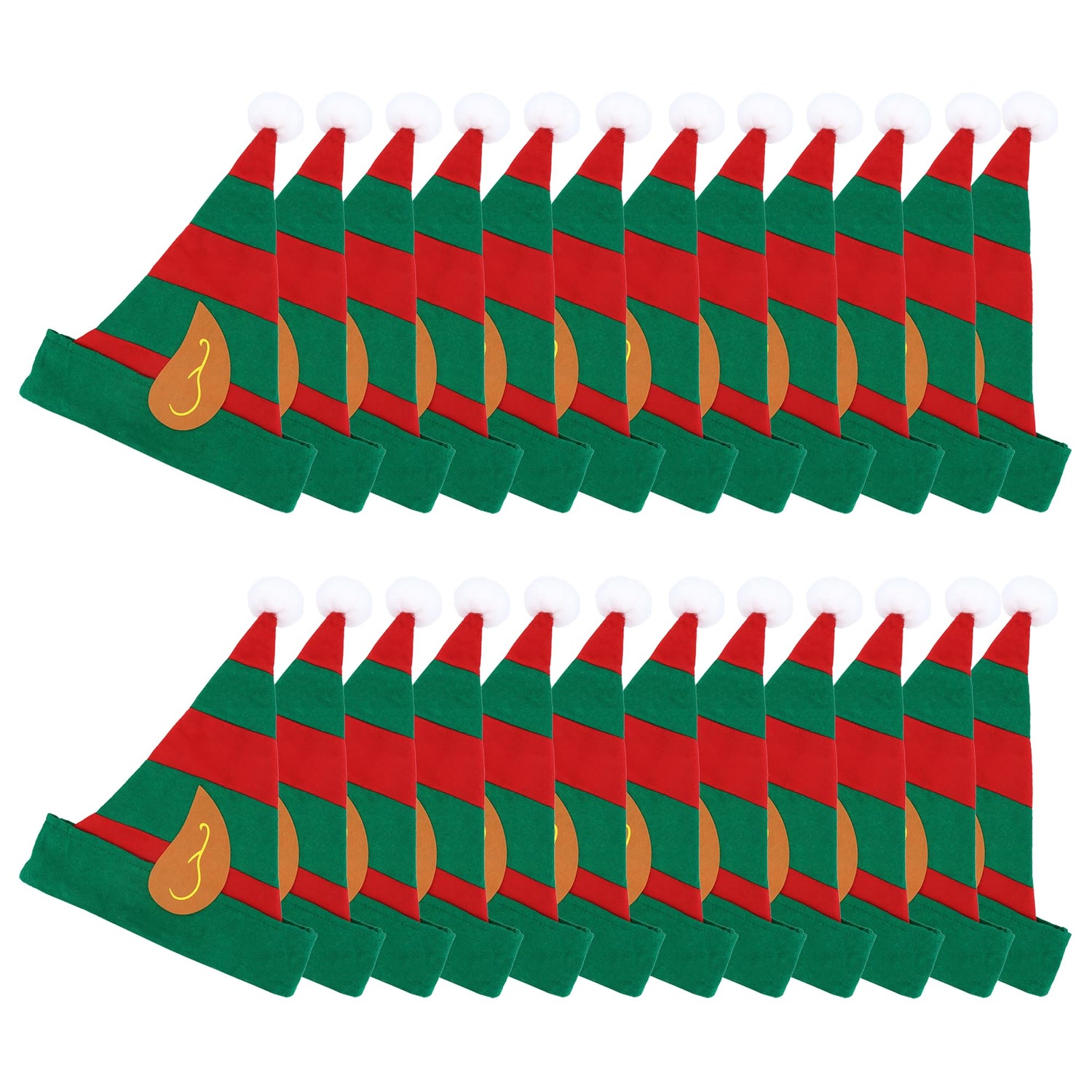 24 x Adult Christmas Elf Hat with Pointy Ears One Size Striped Green and Red Felt Elf Hat Xmas Party Novelty Hat Fancy Dress Costume Accessory for Men and Women