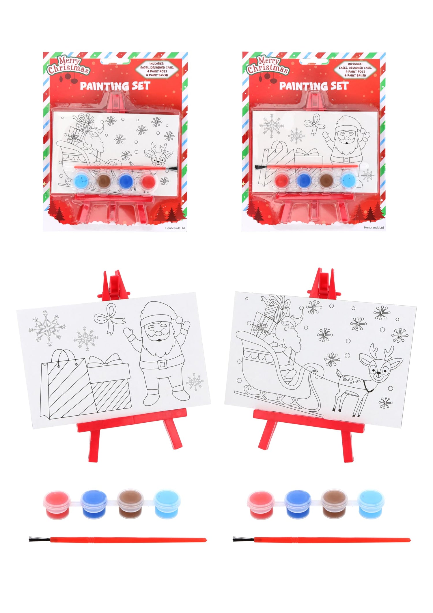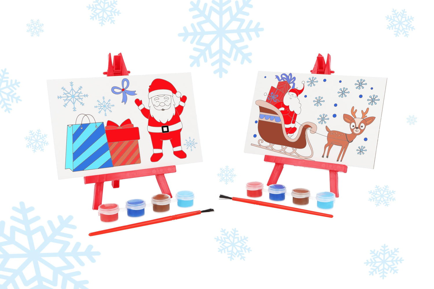 Christmas Mini Painting Party Favour Sets with Plastic Easel and Canvas Colouring Card Craft Activity Kit for Kids 2 Designs Xmas Party Supplies for Boys and Girls